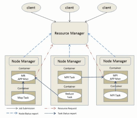 通过YARN实现资源的调度与管理,从而使Hadoop 2.0可以运行更多种类的计算框架,如Spark等;