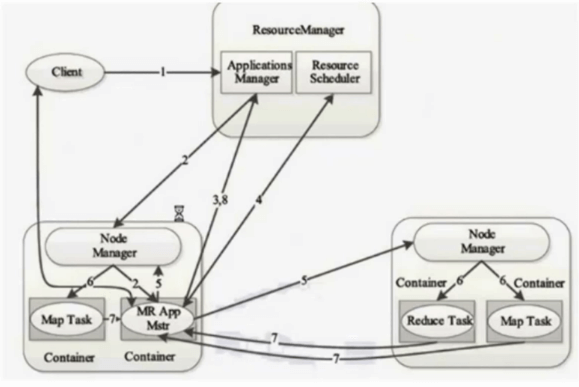 8:ApplicationMaster为本次作业的Map和Reduce以轮询的方式向ResourceManager申请container。