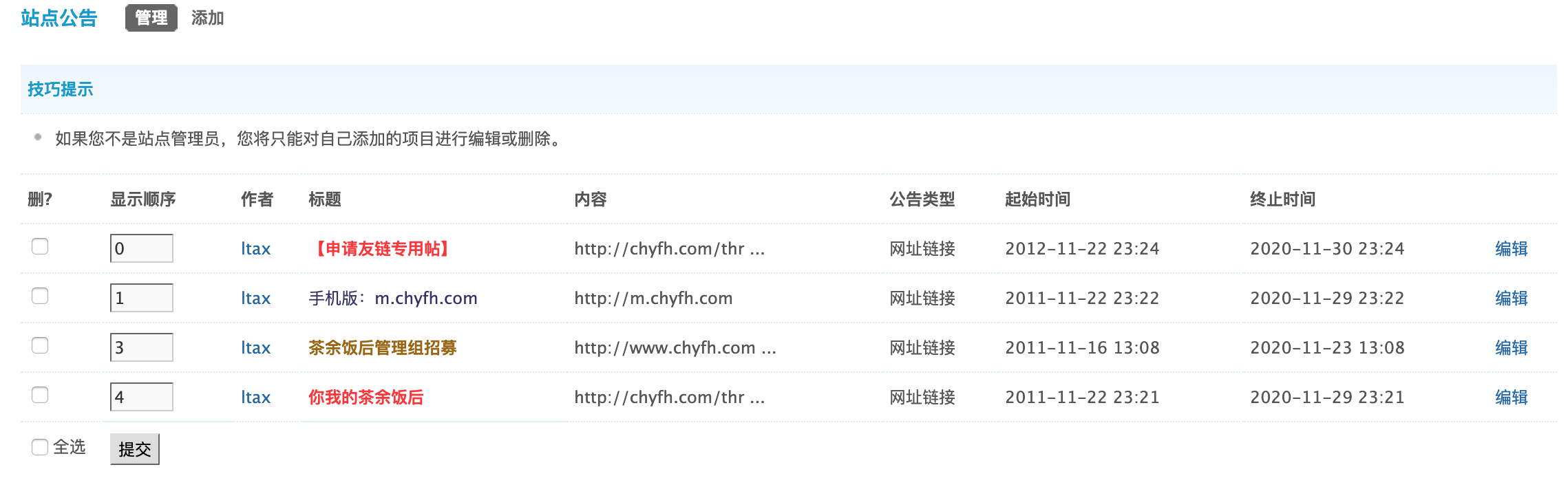 当时发布这些公告的时候,其实默认就是想设置永久展示的,那时候的永久就习惯性地统一设置成了2020年,当时本以为2020年是个久远的年份。