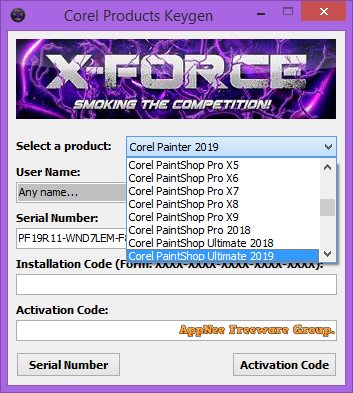Corel Products Keygen is a universal keygen (supports dozens of Corel Corporation products) made by X-Force Crack Team. It is mainly used to generate the Serial Number and Activation Code for CorelDRAW Graphics Suite, Corel Painter, Corel VideoStudio, Corel PaintShop Pro, Corel WordPerfect Office series, … on both Windows 32-bit and 64-bit platforms.