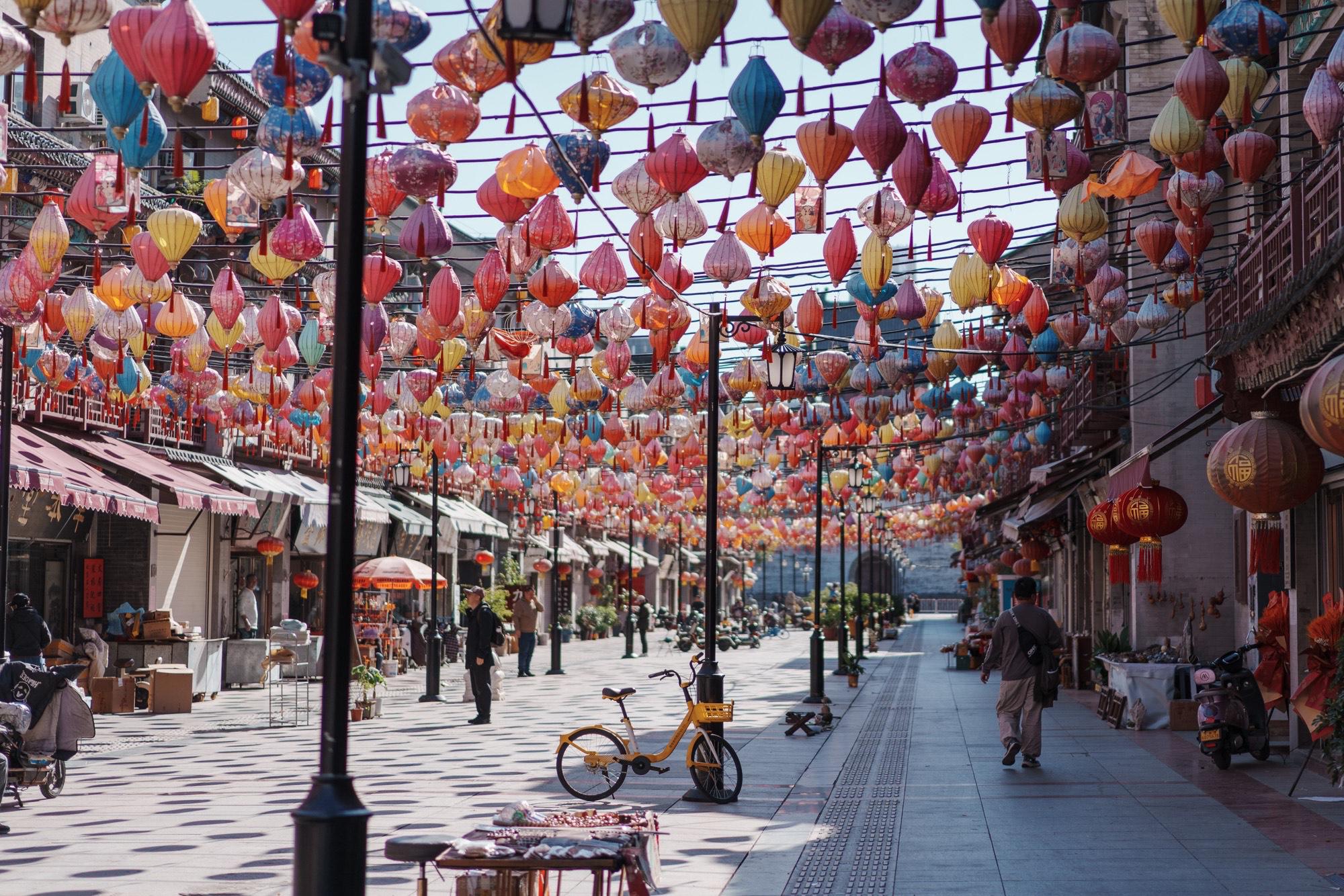 意大利风情旅游区前身为天津意国租界,是中国乃至远东地区唯一现存、保存完整的意大利风格建筑群。区内的钟书阁书店因设计独特,吸引了大量游客,内部人员较为密集。傍晚时分,风情街内的景观灯光尚未开启。