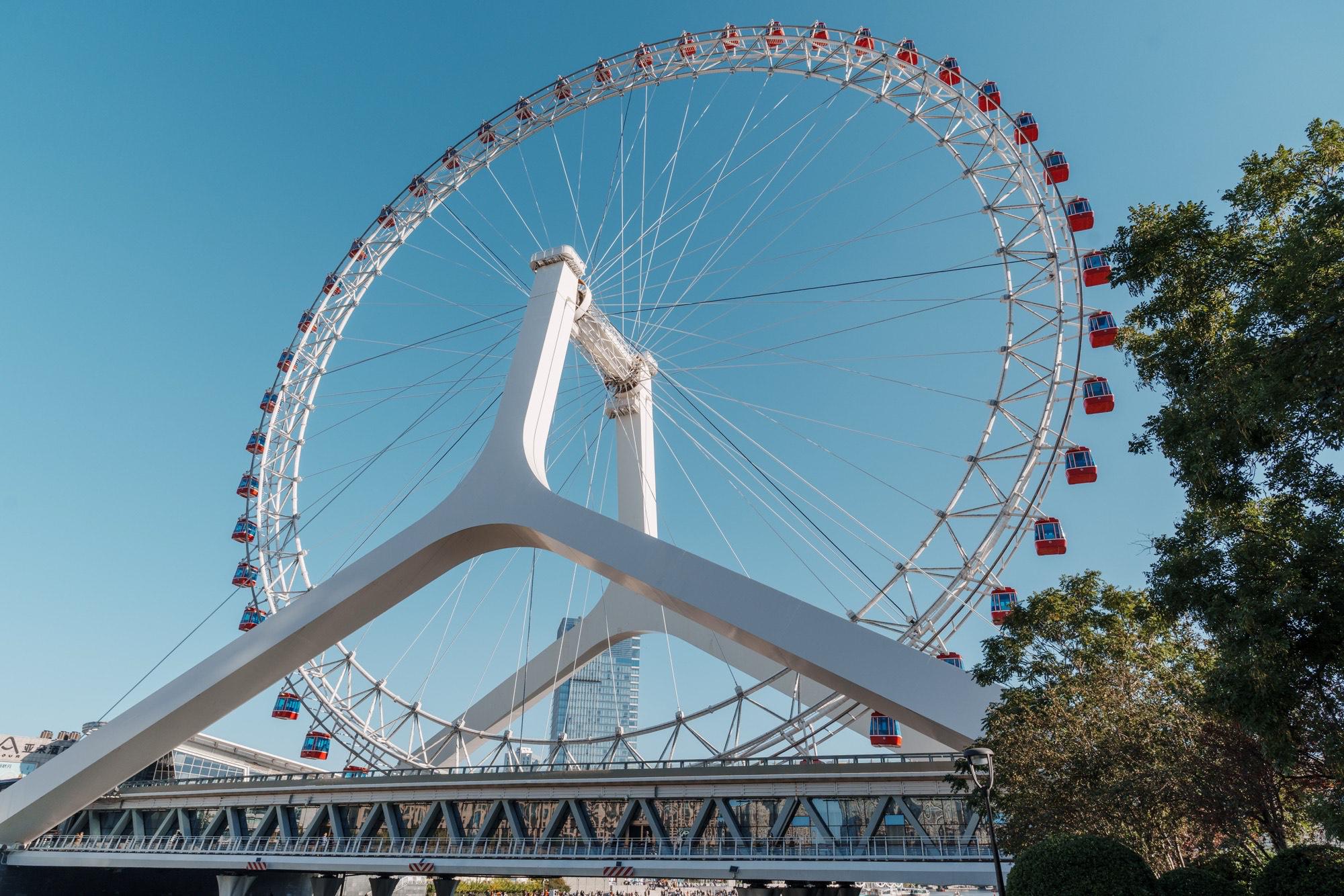 晚餐前,在“古香斋”品尝了刨冰。之后,乘坐当地常见的三轮车(俗称“蹦蹦”)到达金钢桥。据说金刚桥是观赏和拍摄天津之眼的最佳位置之一,但雾霾较重,效果不佳。天津之眼,全称为“永乐桥天津之眼”,是一座跨河建设、桥轮合一的摩天轮,其直径为110米,是天津的地标之一。