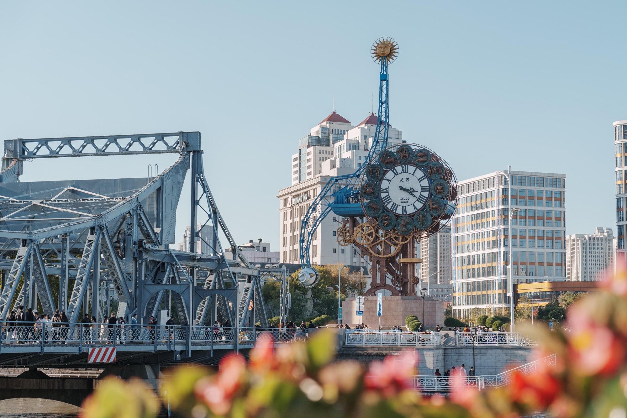 解放桥是一座全钢结构可开启的桥梁,建成于1927年。作为天津的标志性建筑之一,它连接了河北区与和平区。