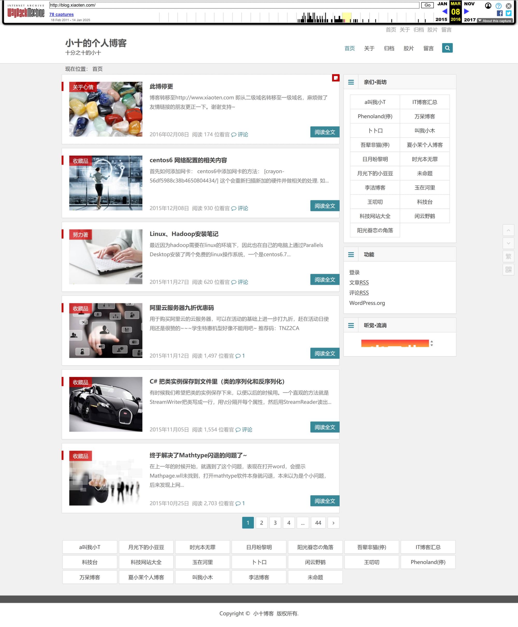看着 xiaoten.com 在 Wayback Machine 里的这十几年变迁,最大的感触是互联网技术的快速淘汰与迭代。
