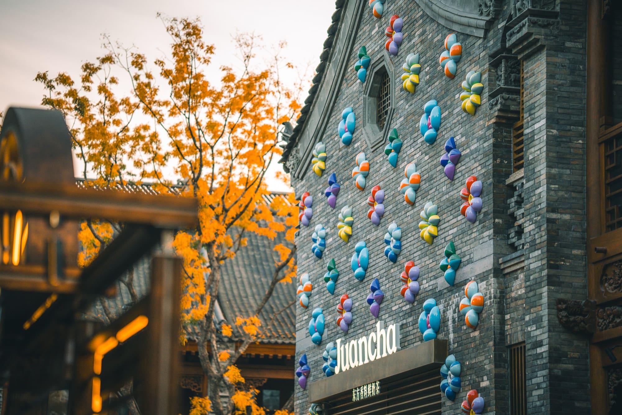 亳都 · 新象位于郑州市管城区,东临商代城垣遗址,西接郑州文庙,由15所主题院落组成,总建筑面积约4万平方米,是郑州市首个中原传统文化主题街区。项目占地面积46亩,包含3条主街、多条巷道及4个文化主题广场,融合传统街巷肌理与现代建筑技术,采用老砖、青石板与玻璃砖等材料,体现“城、街、巷、院、景”五维布局。院墙采用“四色混拼”施工方法搭配新旧青砖,屋面瓦片使用“压五露五”等传统工艺铺设。