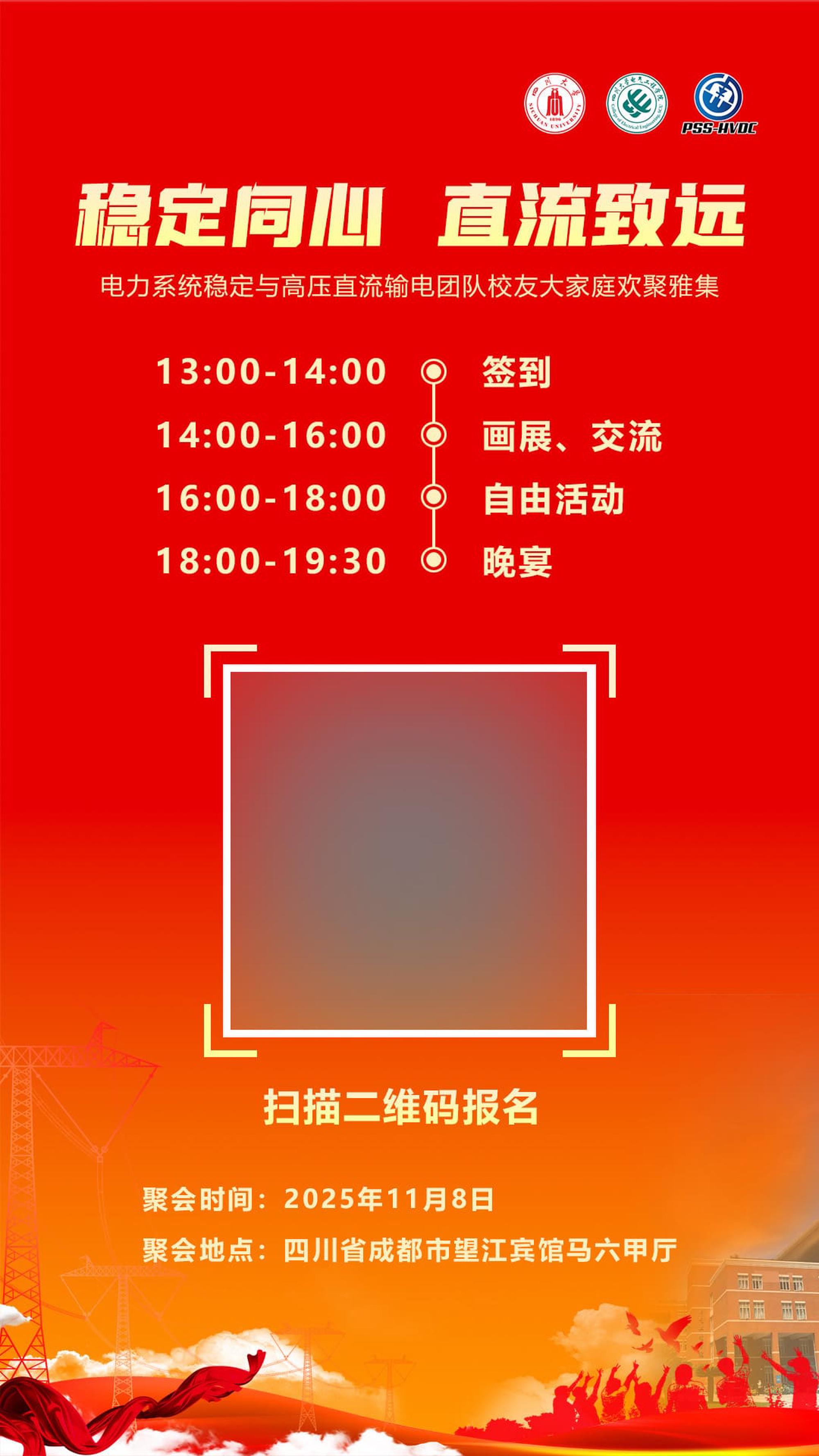 10月20日,读研期间的导师在群里发布活动通知,计划于11月8日在成都望江宾馆举办“电力系统稳定与高压直流输电团队校友大家庭欢聚雅集”。自2017年毕业至今,虽然我曾两次到过成都——一次是因参加QC发布会,一次是假期来游玩——但都未能与导师见上一面。正好借此次活动,利用周末两天时间,与导师见面叙旧。