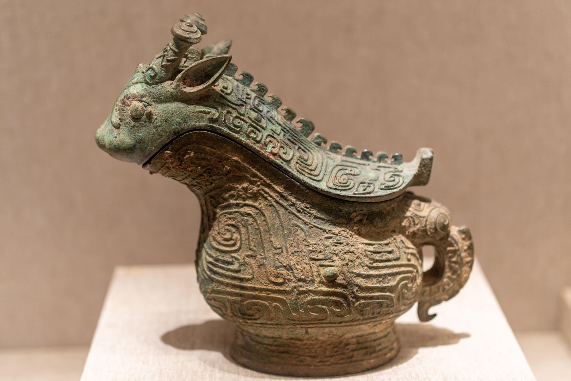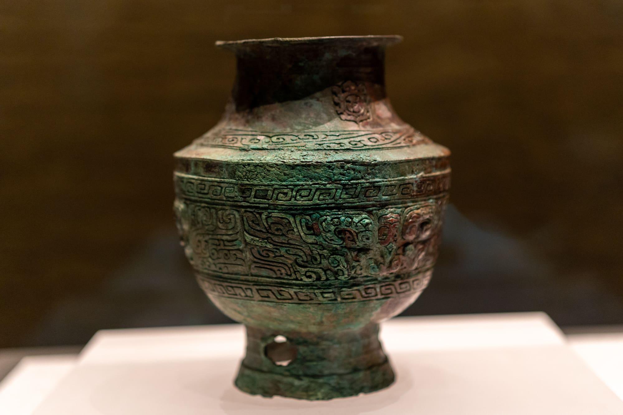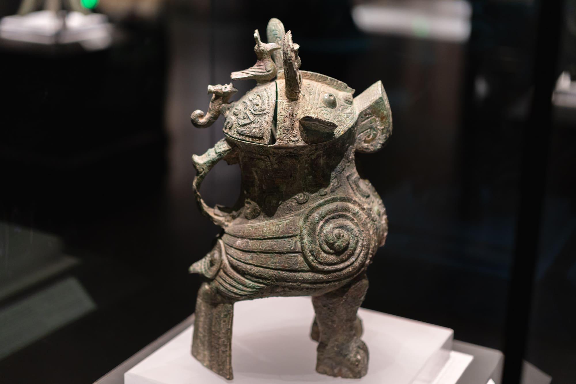 兽面纹铜罍(léi)(酒器):商代前期(公元前 1600 - 前 1300 年),郑州市白家庄出土。