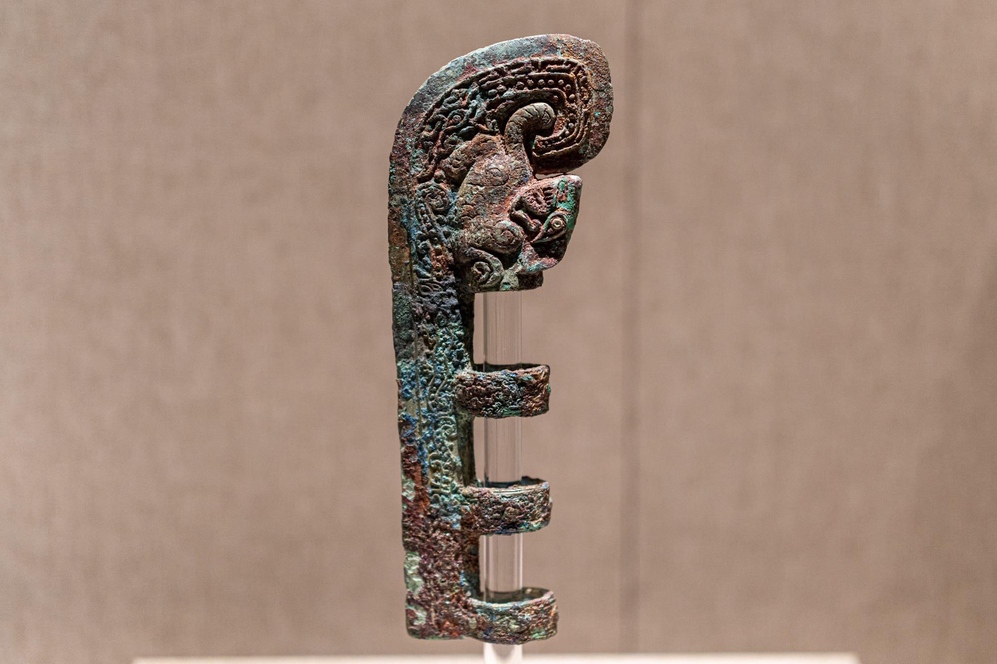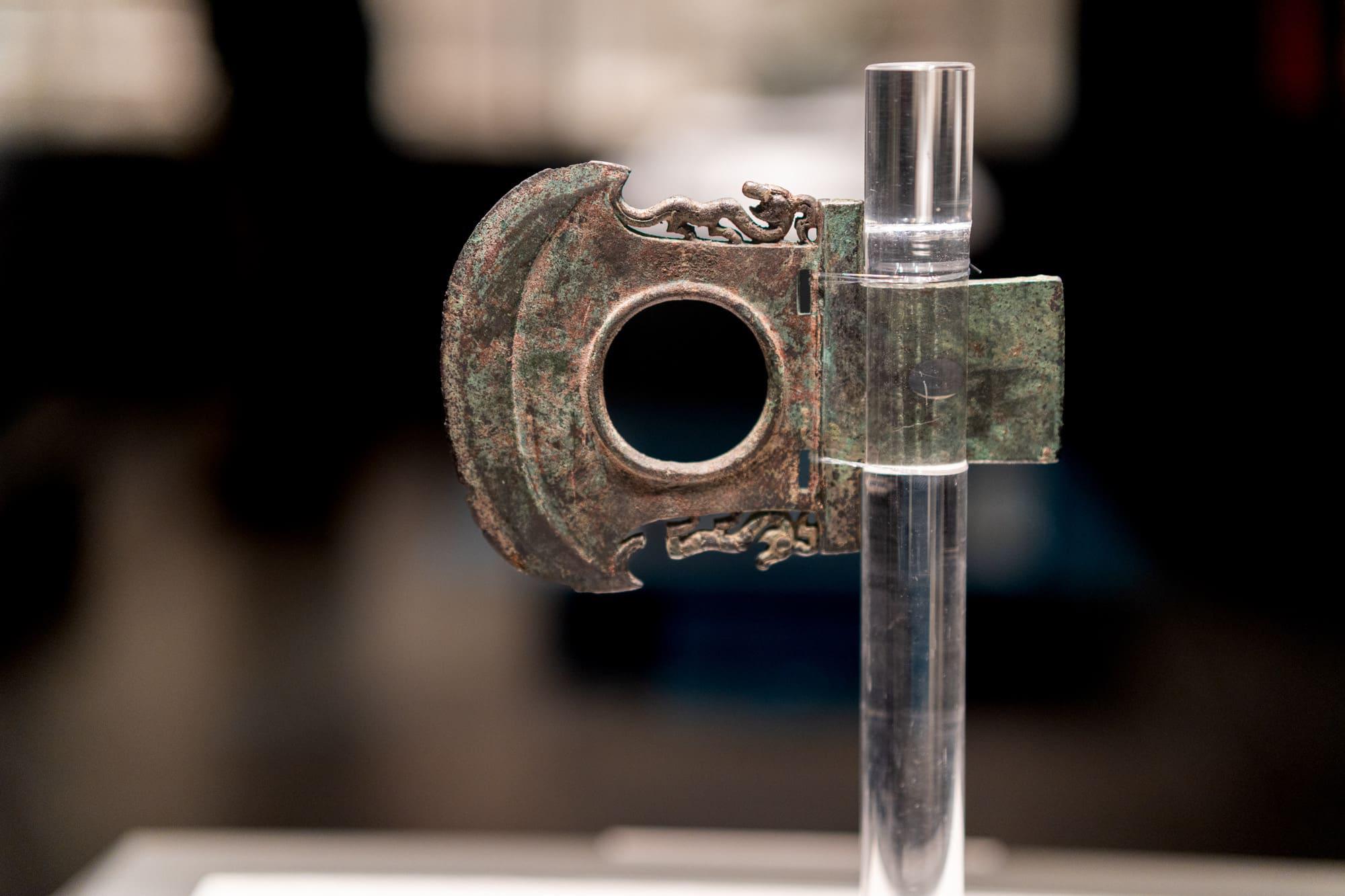 透雕夔(kuí)龙纹铜钺(yuè)(兵器),西周(公元前 1046 - 前 771 年),洛阳市北窑出土。