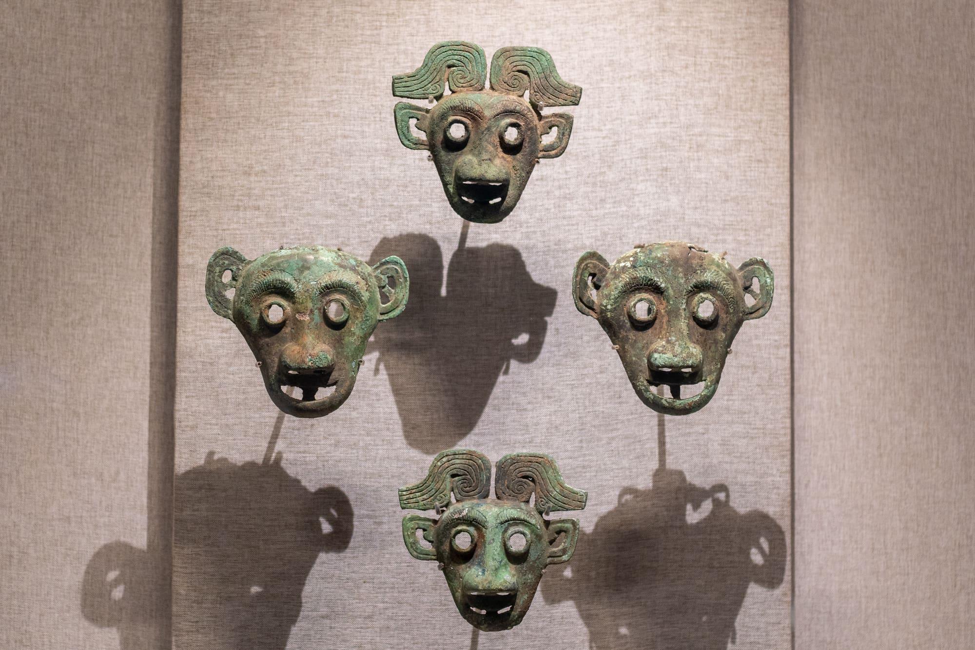 人面铜马具,平顶山应国墓地出土。装饰在马头上的铜饰,铸有人面纹样,显得神秘而威严。
