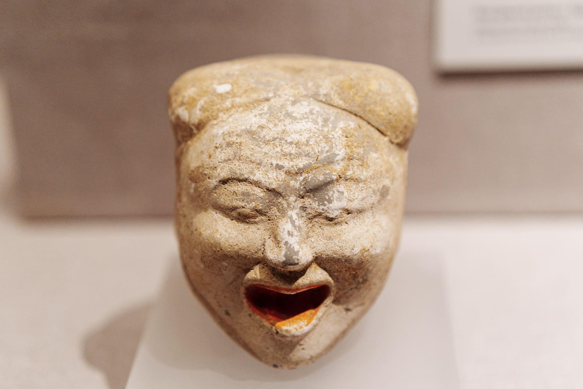 陶俑头:西汉,宜阳县出土。面部表情夸张生动。