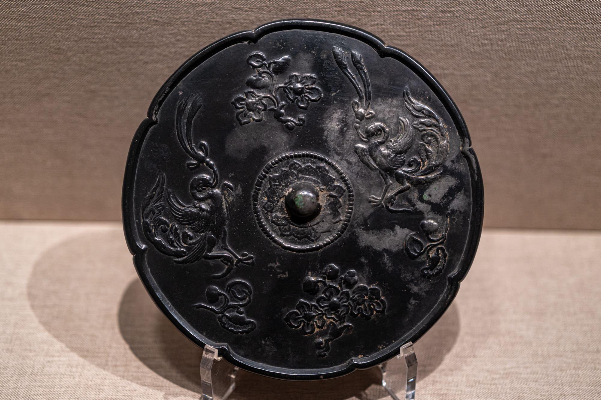 透雕花鸟纹铜镜:唐代,鹤壁浚县采集。