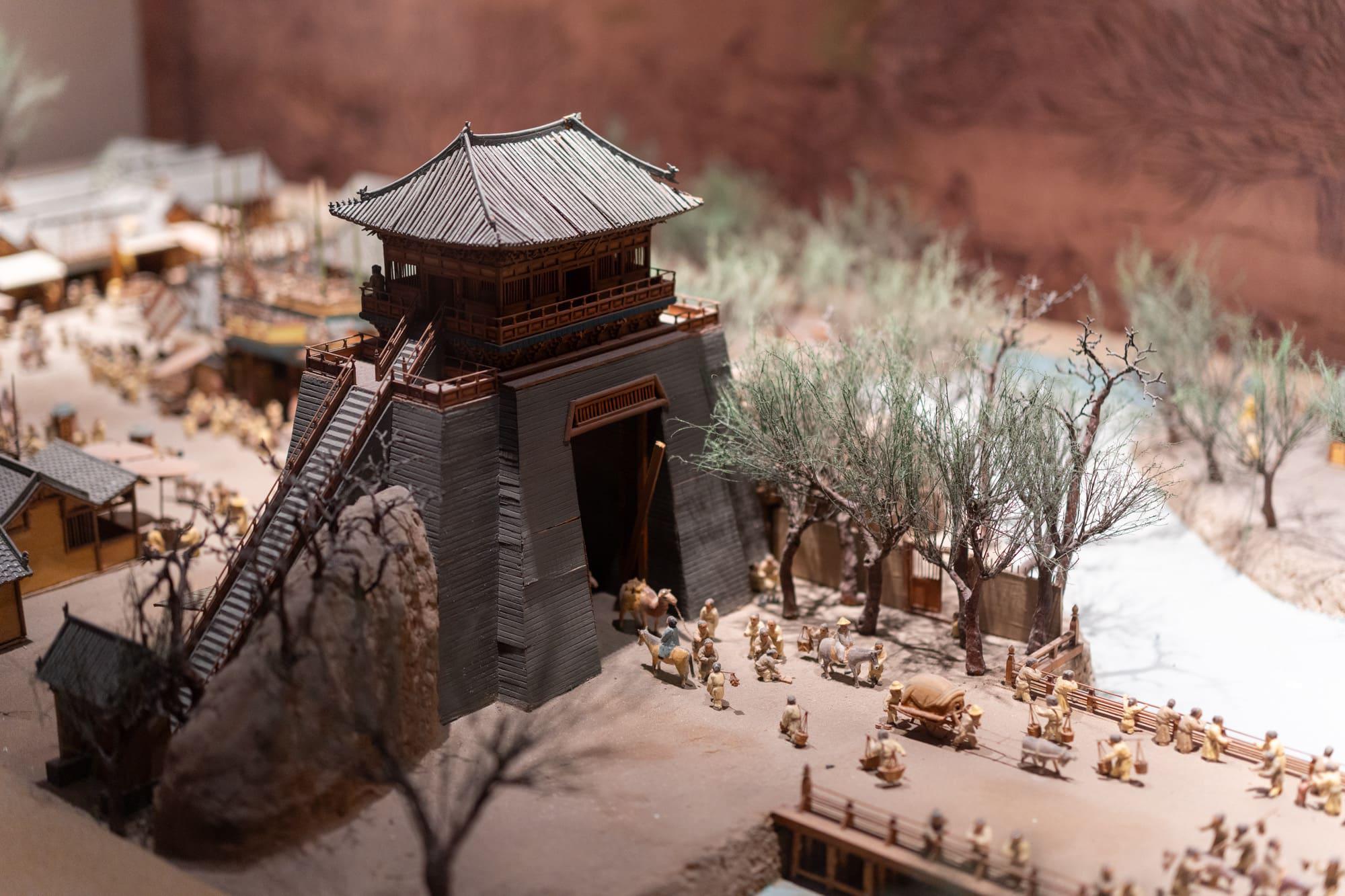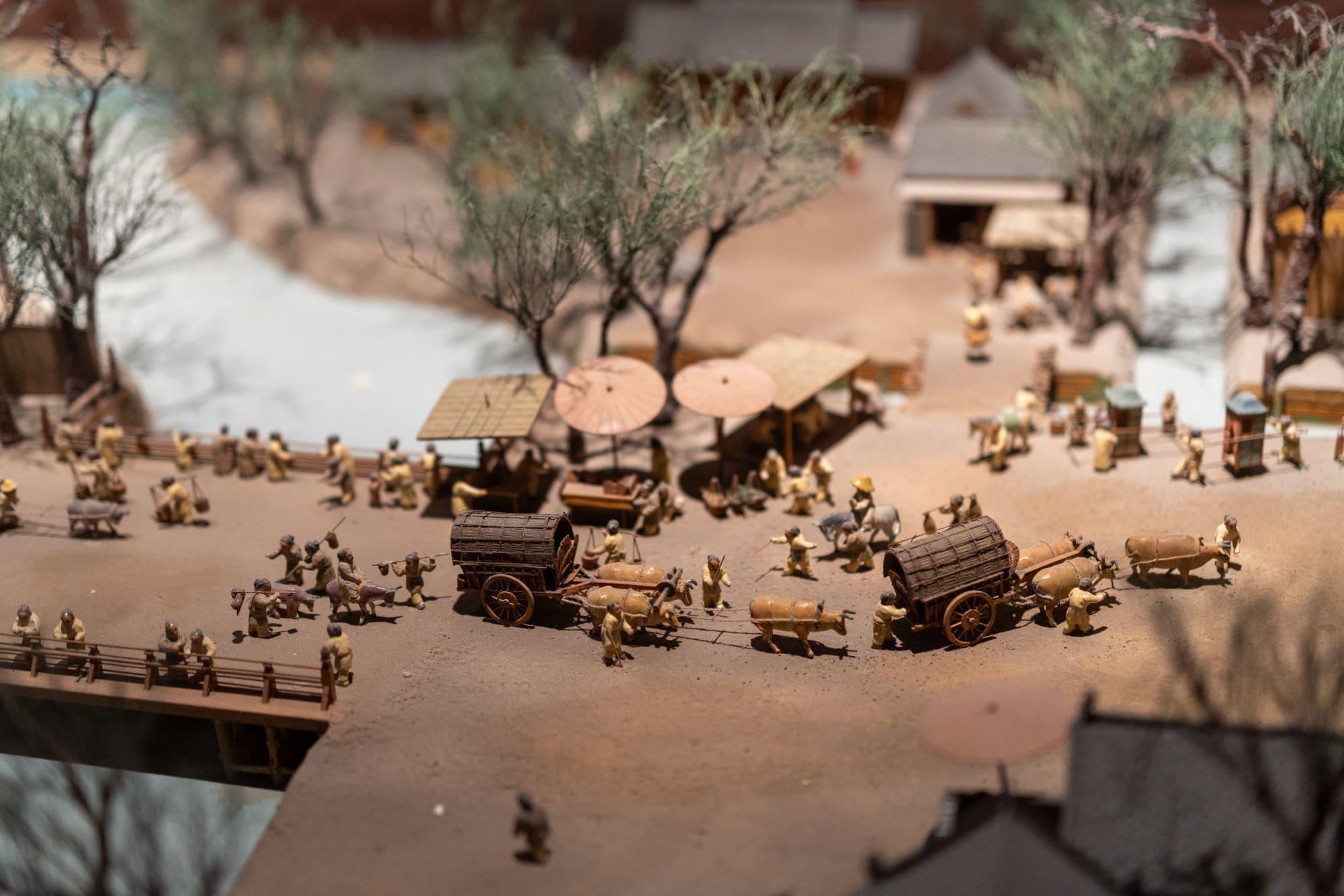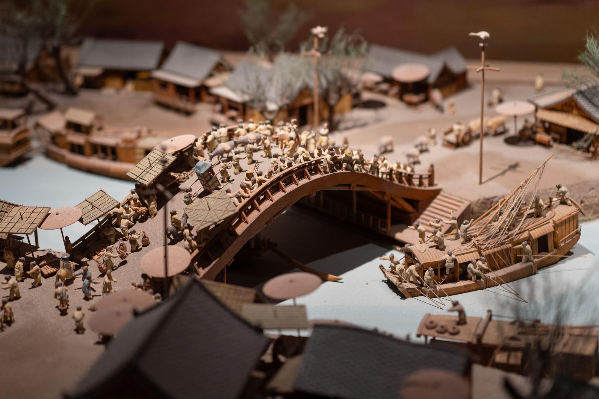 《清明上河图》卷,北宋,张择端作,绢本,淡设色,纵24.8厘米,横528厘米。目前收藏于国家博物馆,此处展示了其模型。