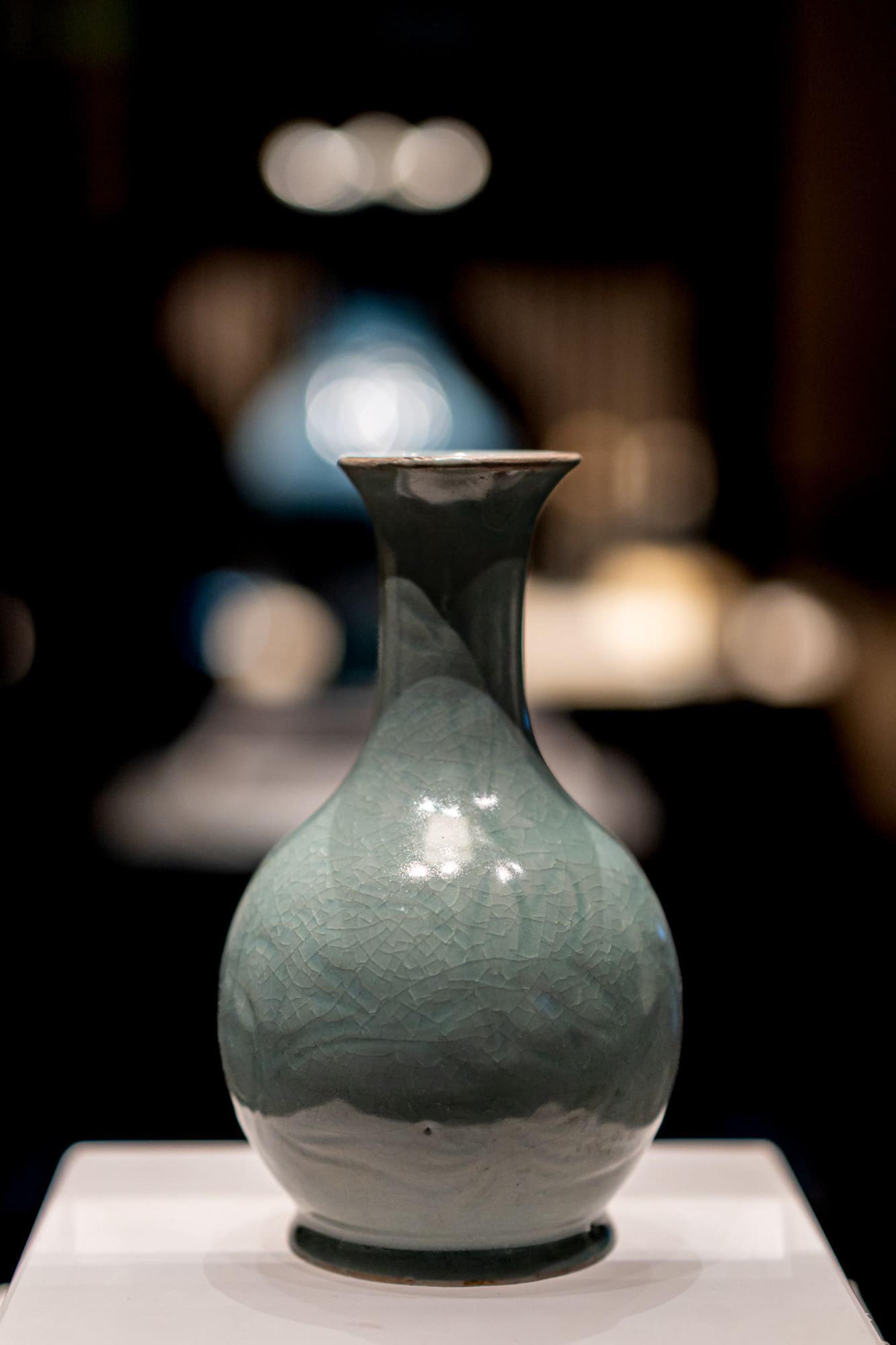 🌟 镇院之宝——汝窑天蓝釉刻花鹅颈瓶(第十展厅)