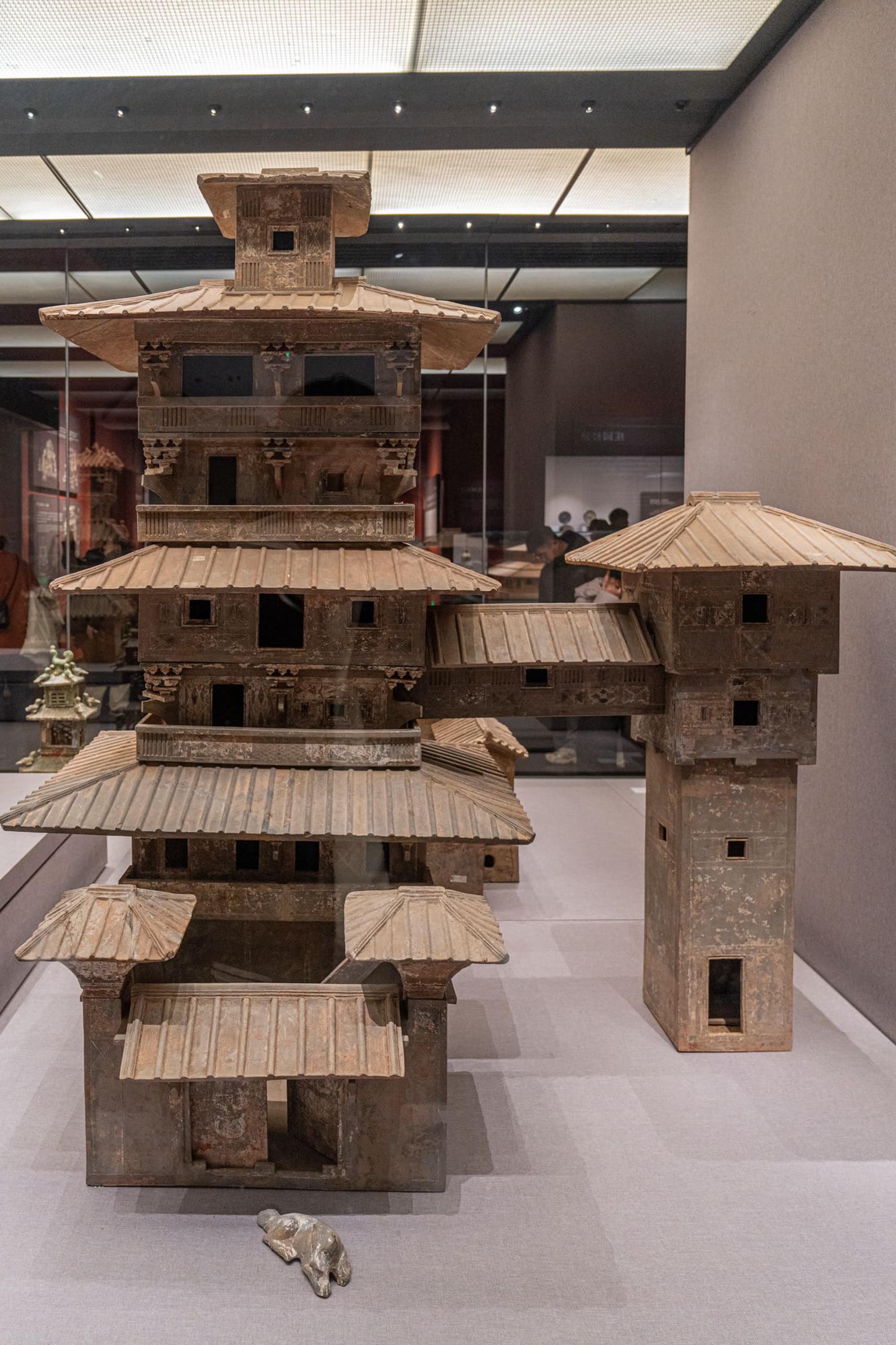 该陶楼由院落、主楼、附楼、阁道组成,七层主楼与四层附楼以阁道连接,是汉代“复道凌空”“跨城池作飞阁”建筑技术的真实写照。