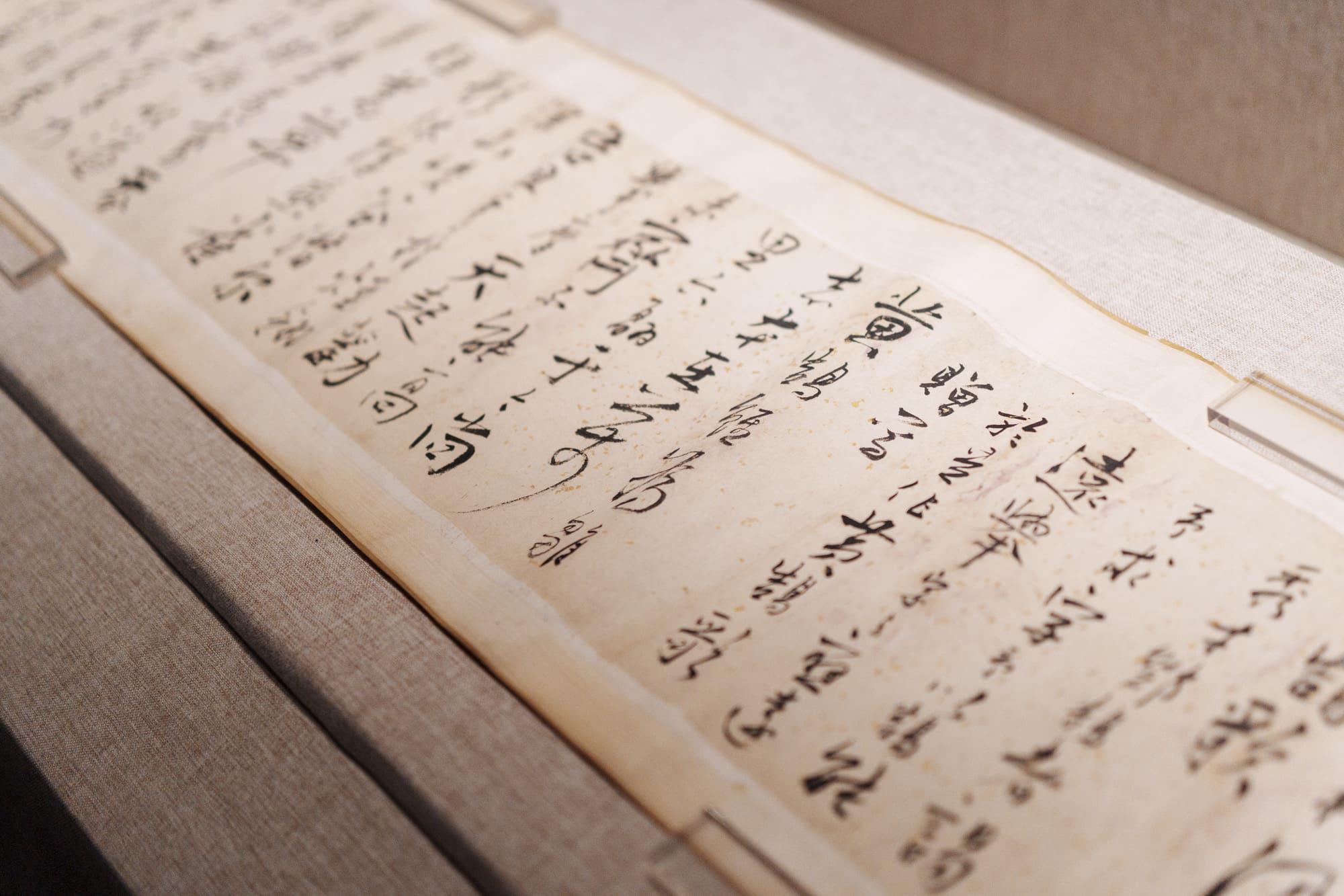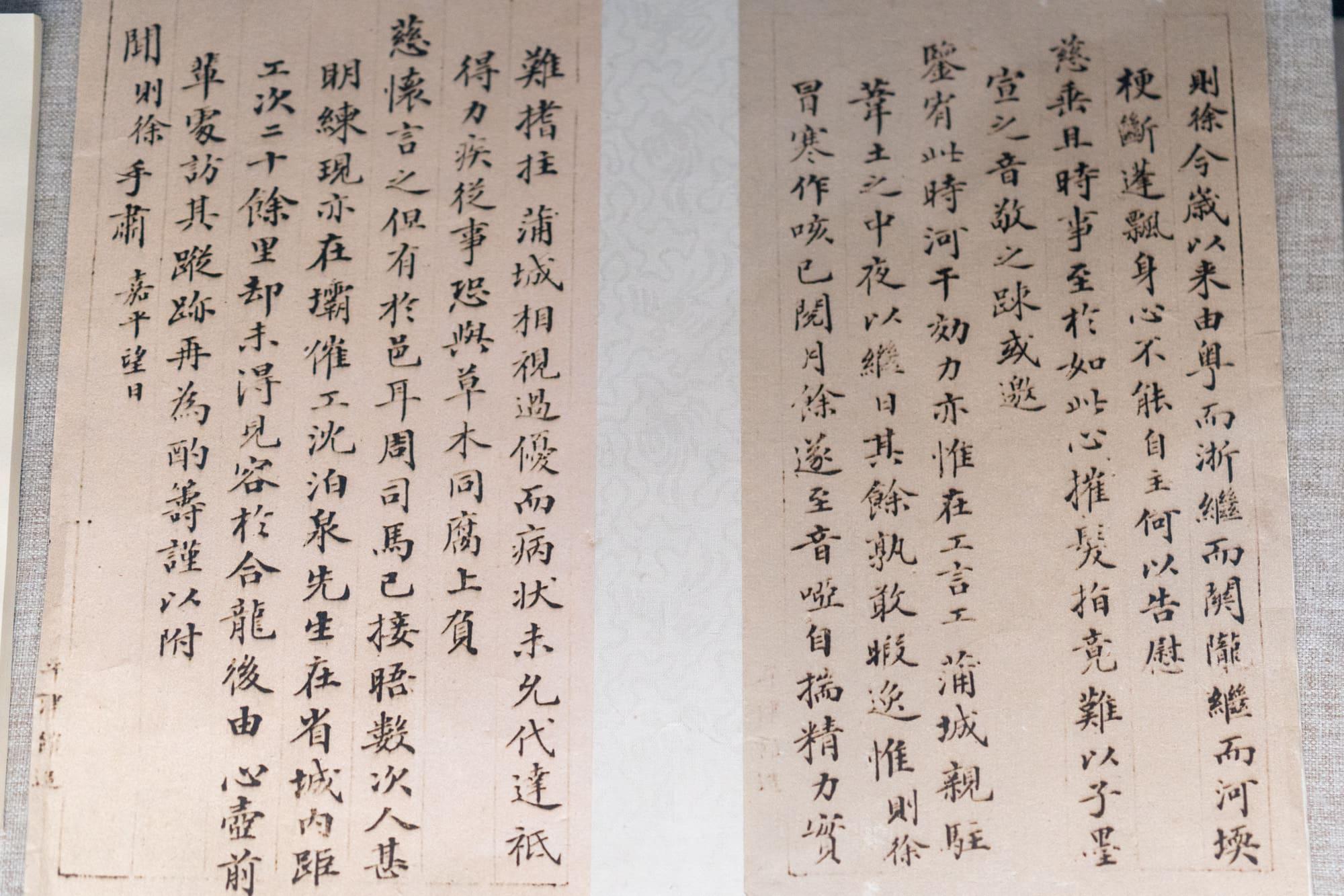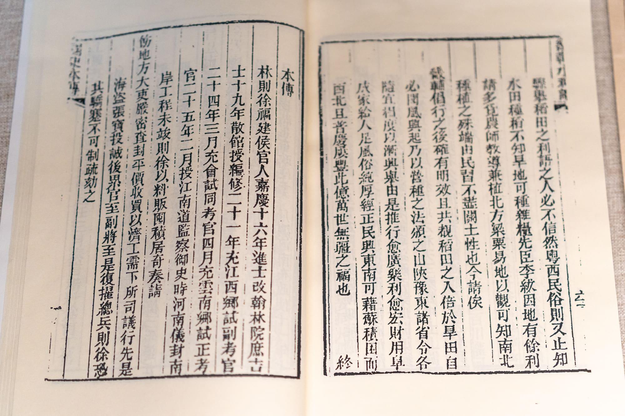 林则徐治河文献(复制品):包括《畿(jī)辅水利议》刻本和《致沈维鐈(qiáo)的信》。林则徐不仅是禁烟英雄,也是治水能臣。这些文献记录了他在河南主持治理黄河时的艰辛历程和“亲驻苇土之中,夜以继日”的治水精神。