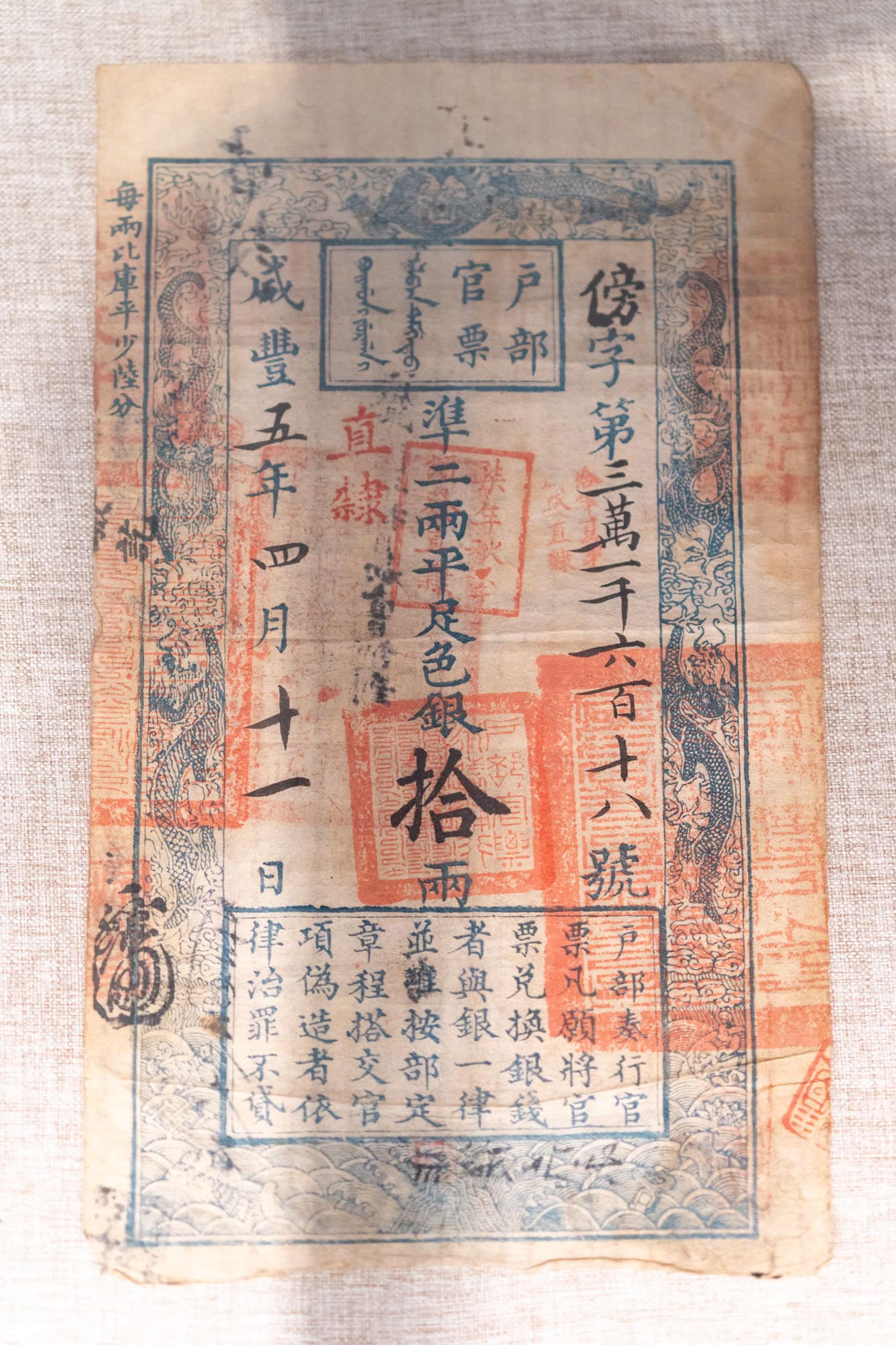 大明通行宝钞是明初发行的纸币,面额巨大;户部官票和大清宝钞则是清代咸丰年间发行的纸币。