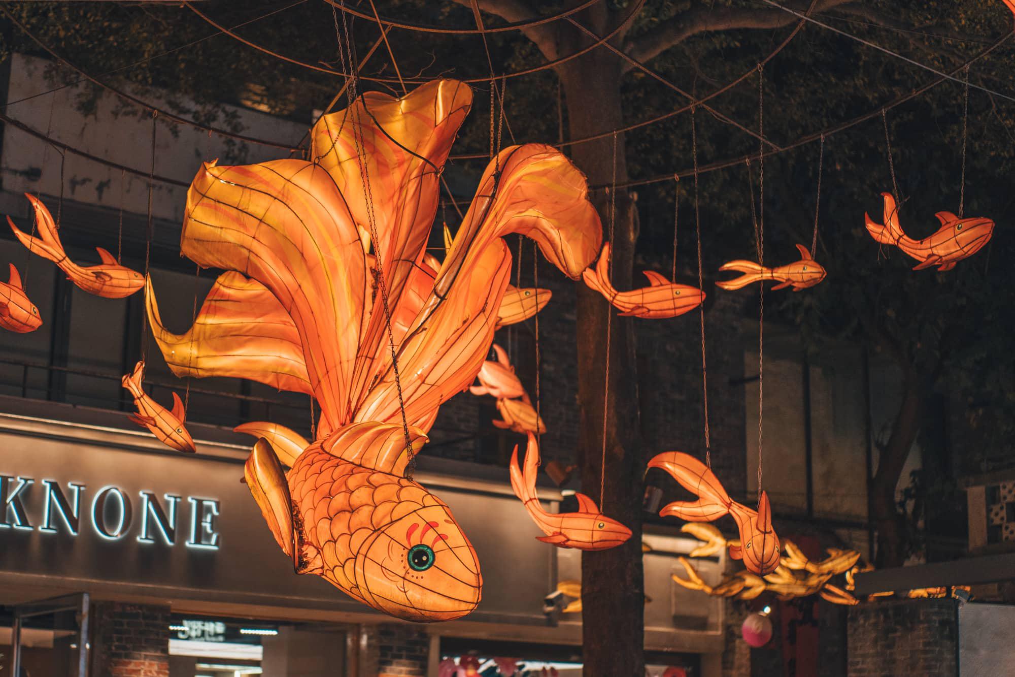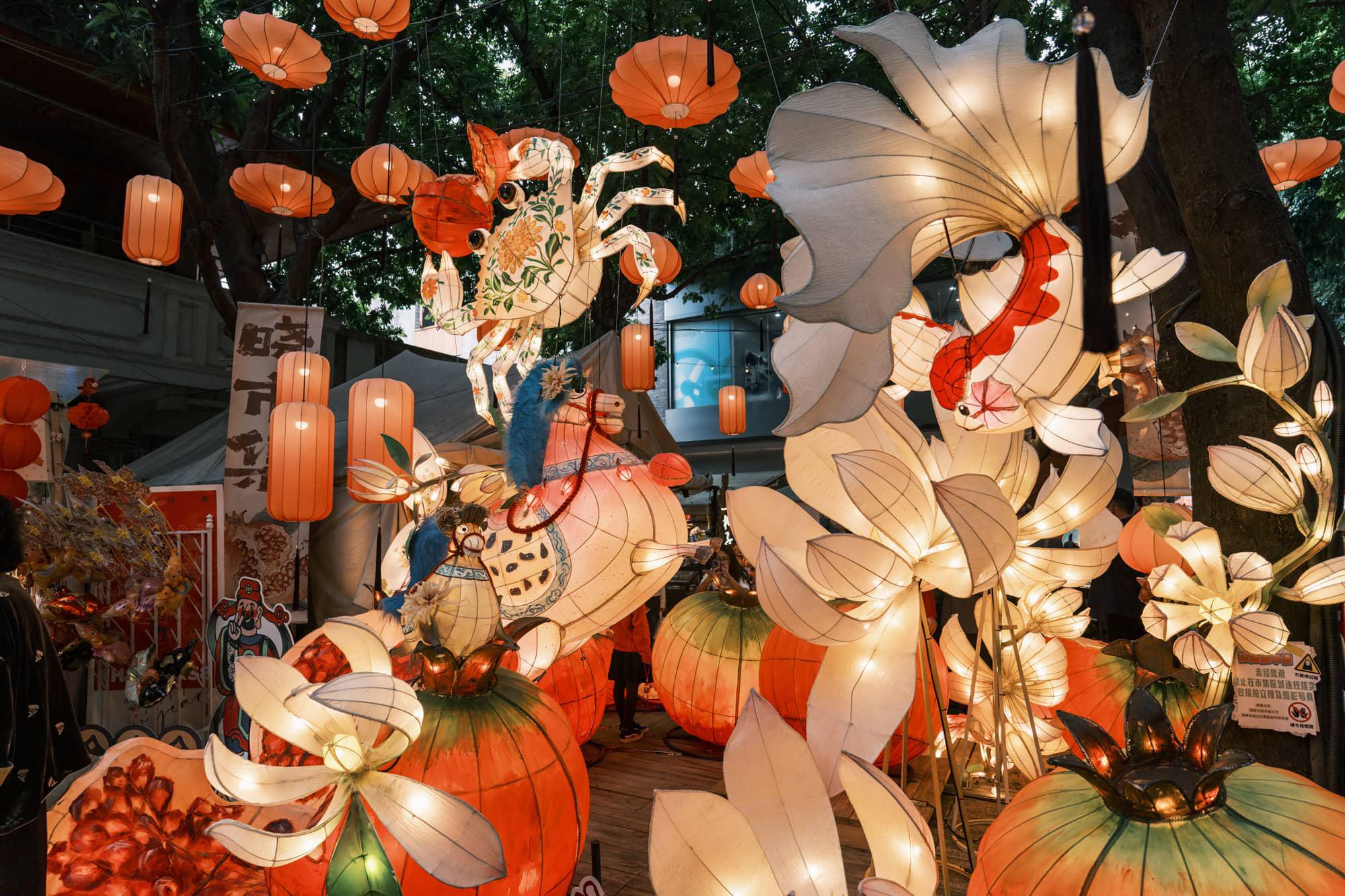 昨天因寻找餐馆,并在岭南天地并未久逛,今天倒是深入岭南天地,发现人流量达到顶峰。商区里布置的花灯非常精致,晚上效果应该更好。