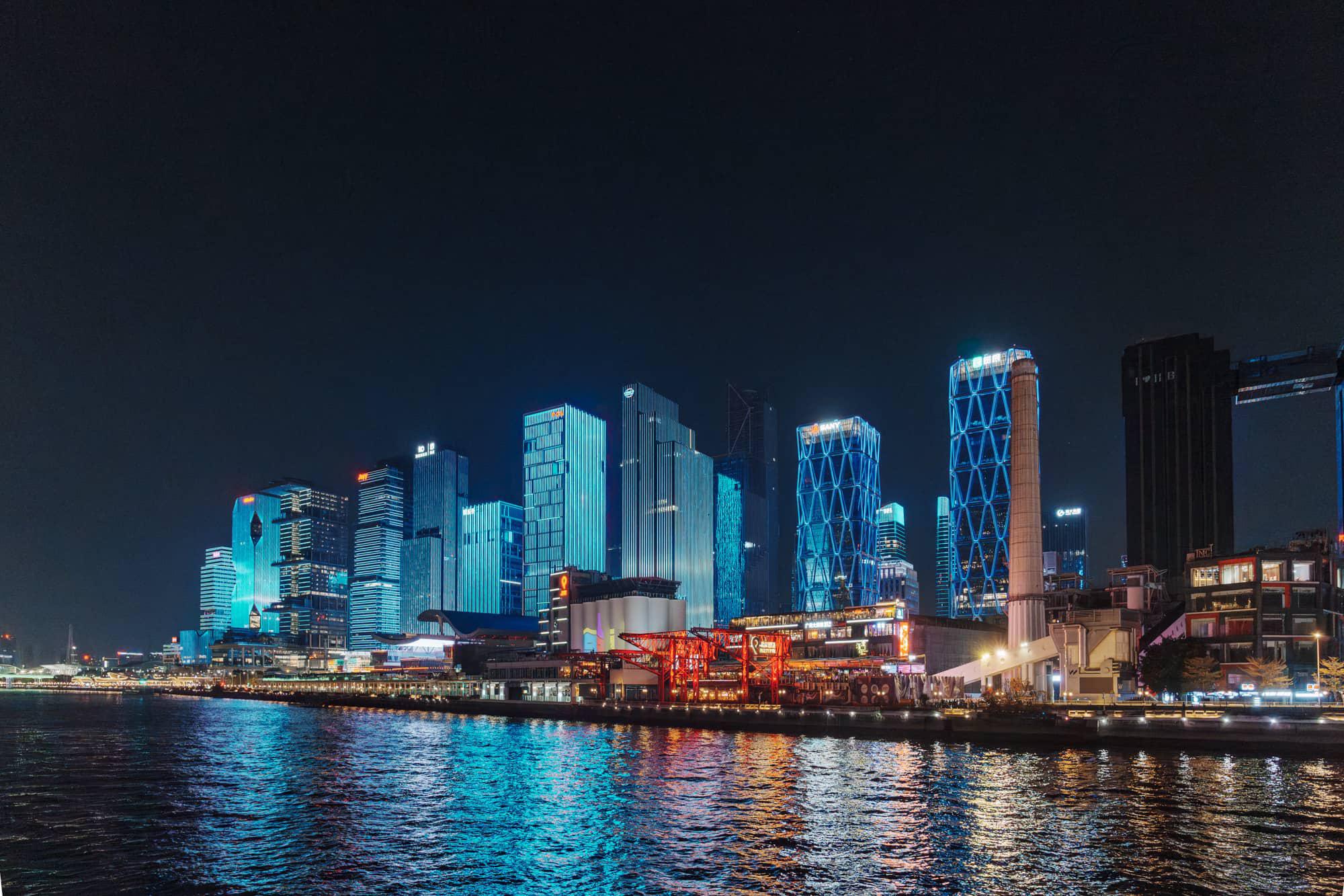 因这次出行没有带三脚架,船上晃动无法拍摄长曝光,所以暴力提高 ISO 来拍摄夜景,所以图片质感有些差。