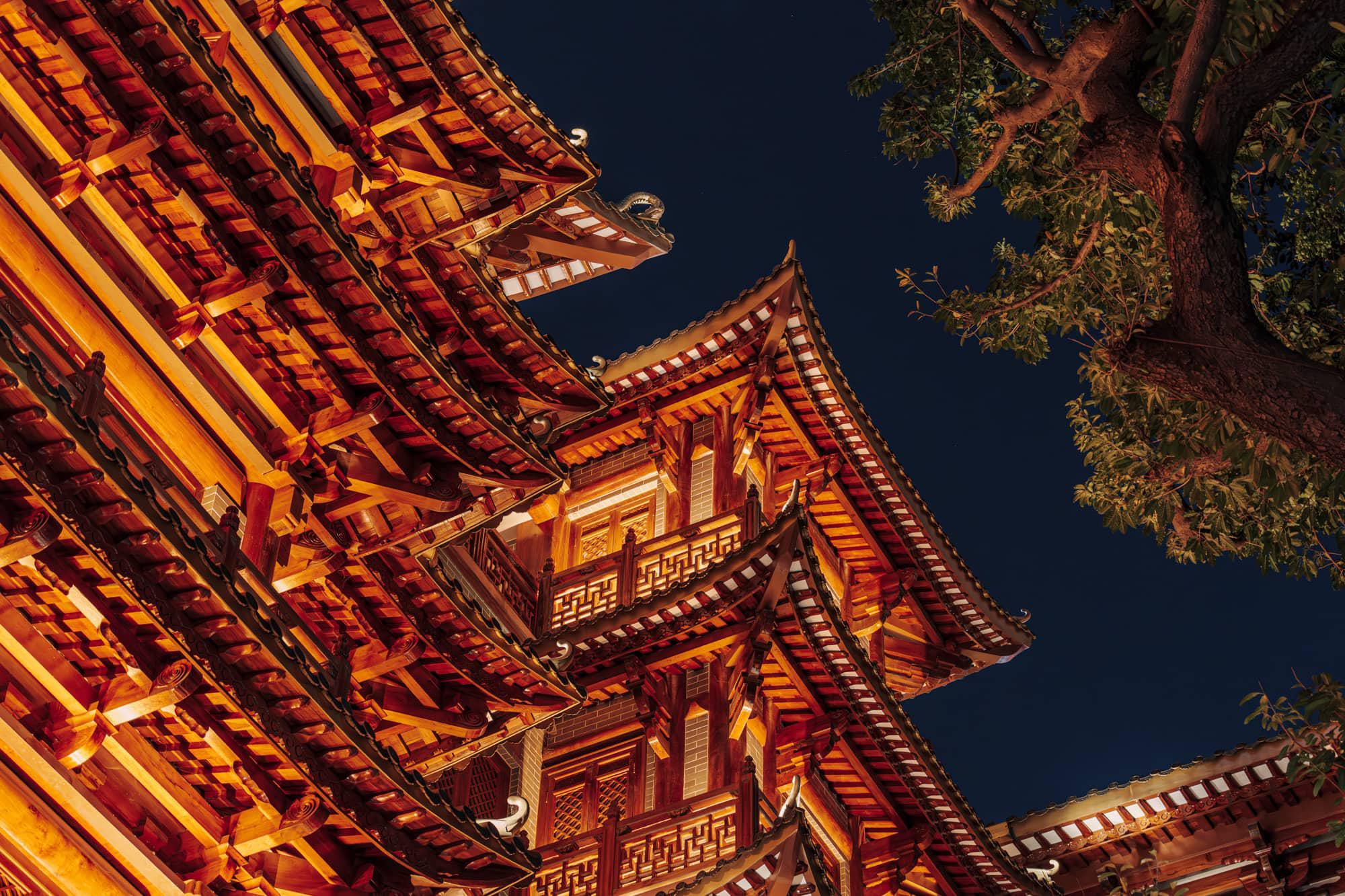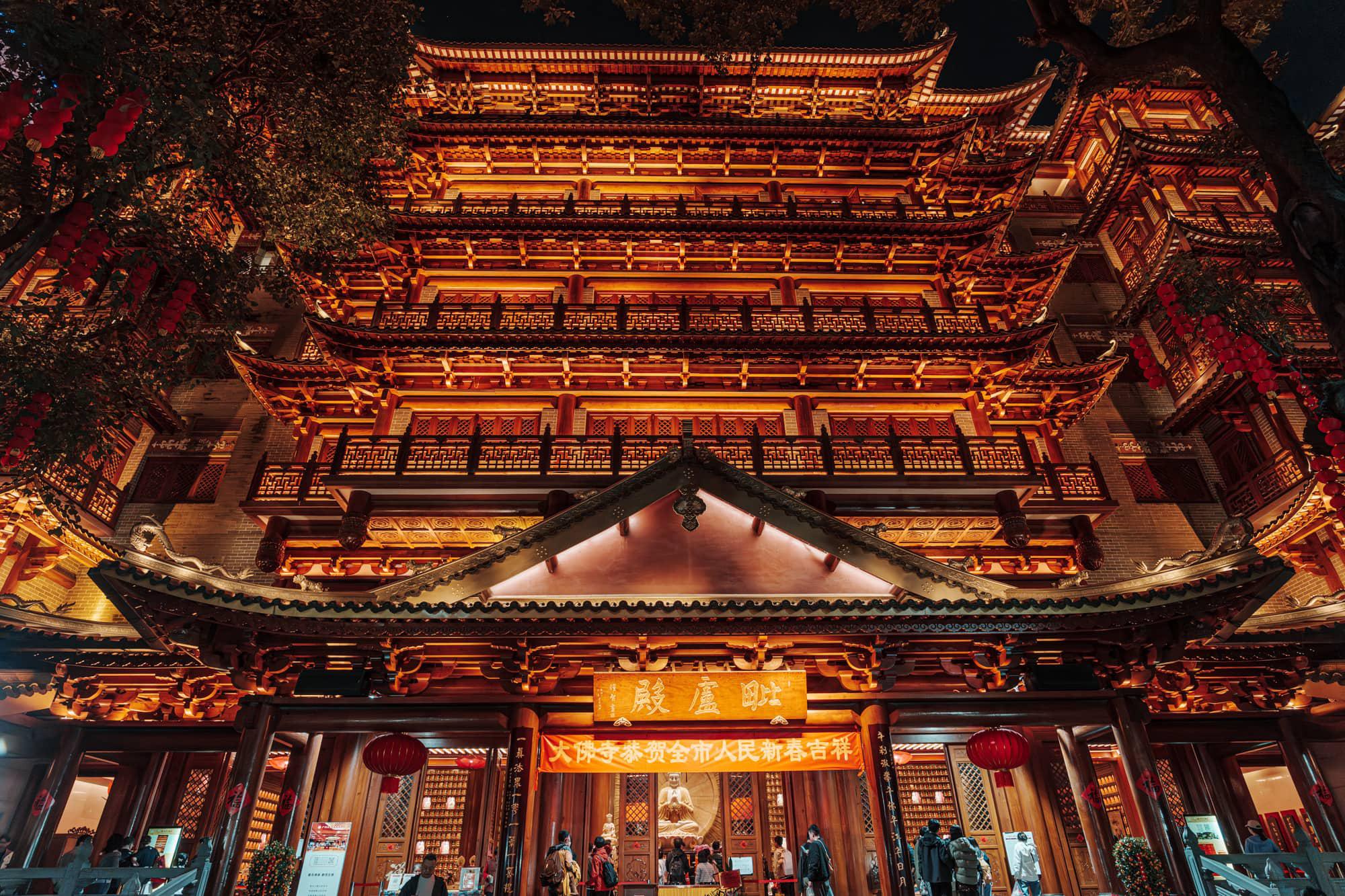 商业街人实在太多,来这里也主要为了到大佛寺一趟,只因网友推荐夜晚的大佛寺,亮灯后金碧辉煌,有些像《千与千寻》里的汤屋。