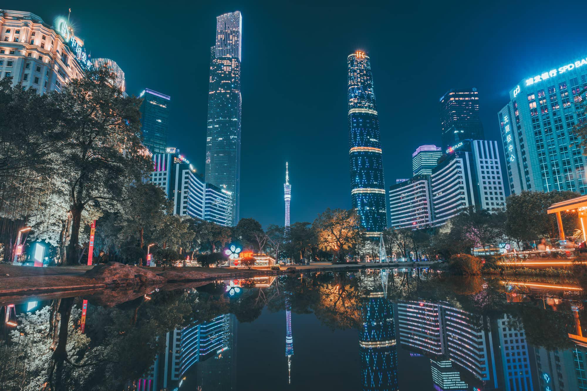 晚上让媳妇在酒店休息,独自又去了趟岭南天地拍拍夜景。