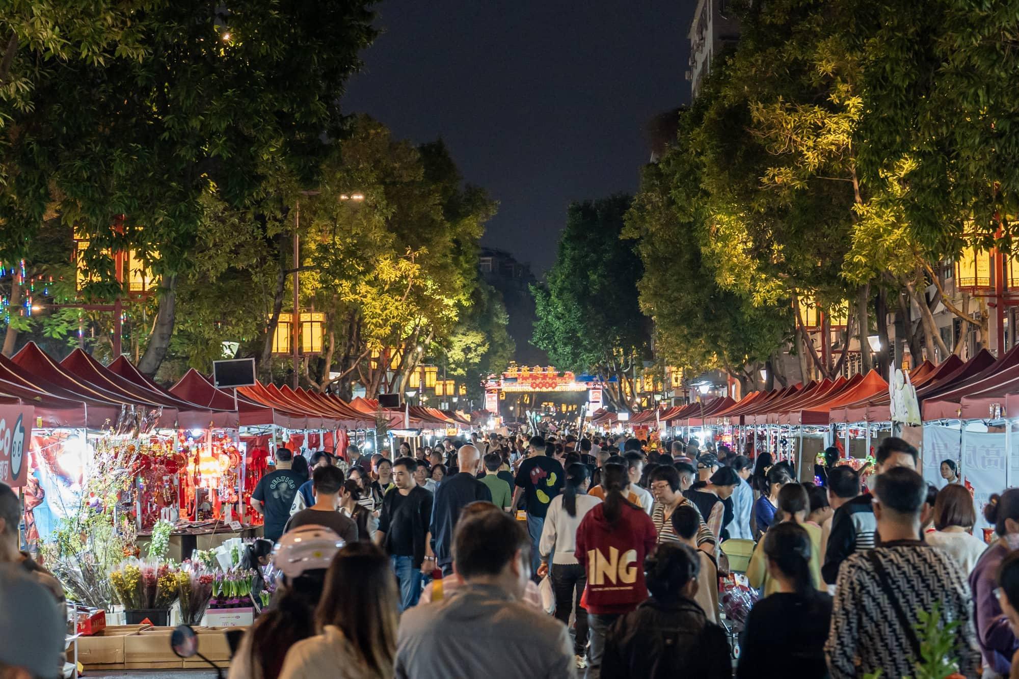 饭后实在打不到车,继续骑车到了位于松风路的“祖庙迎春花街”,这也是当地花市的最后一天。