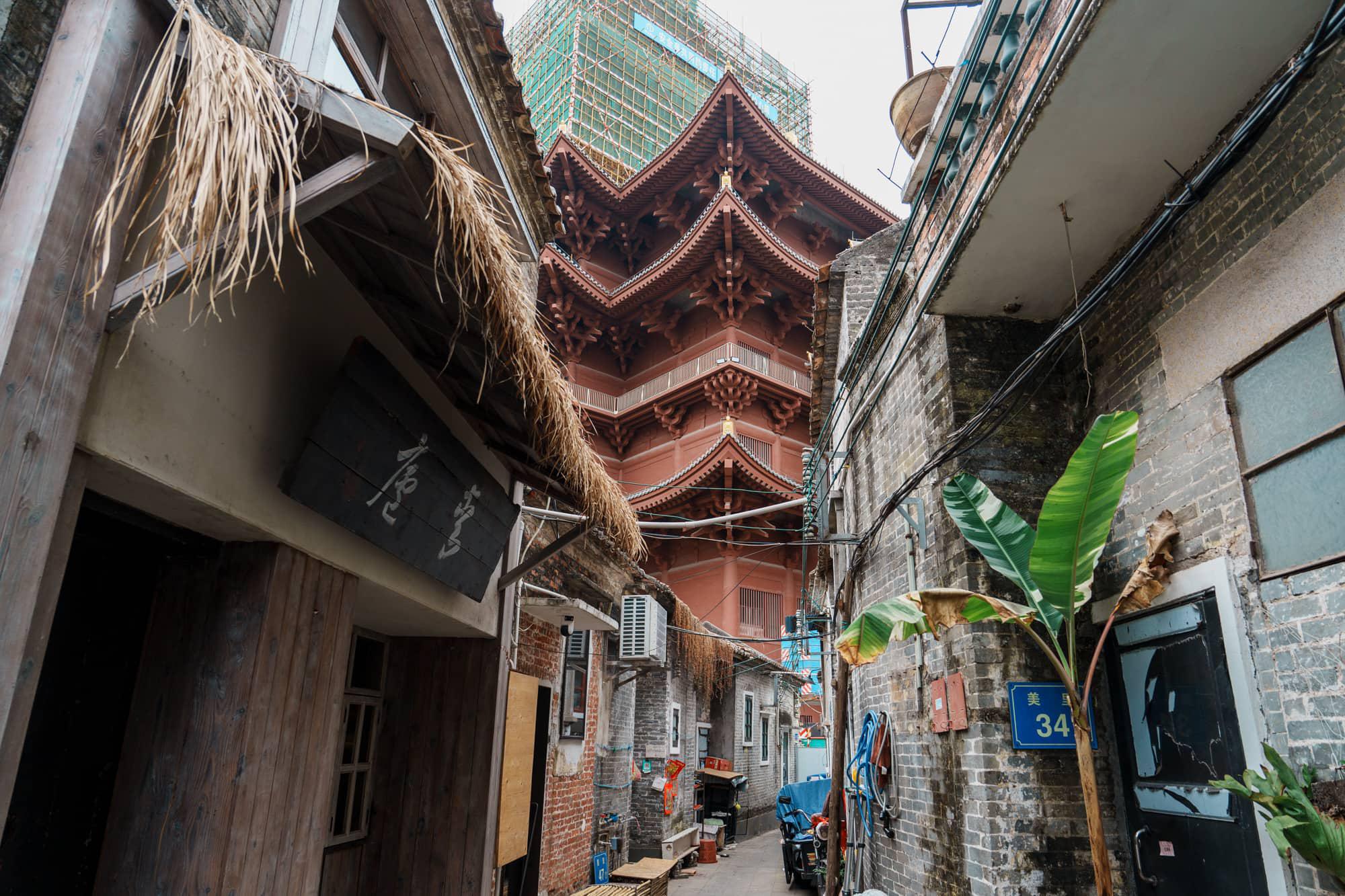 永庆坊是广州老城区微改造的典范,保留了大量老西关的骑楼建筑。走在青石板上,两边是潮店和非遗工作室,李小龙的祖居也在这里。
