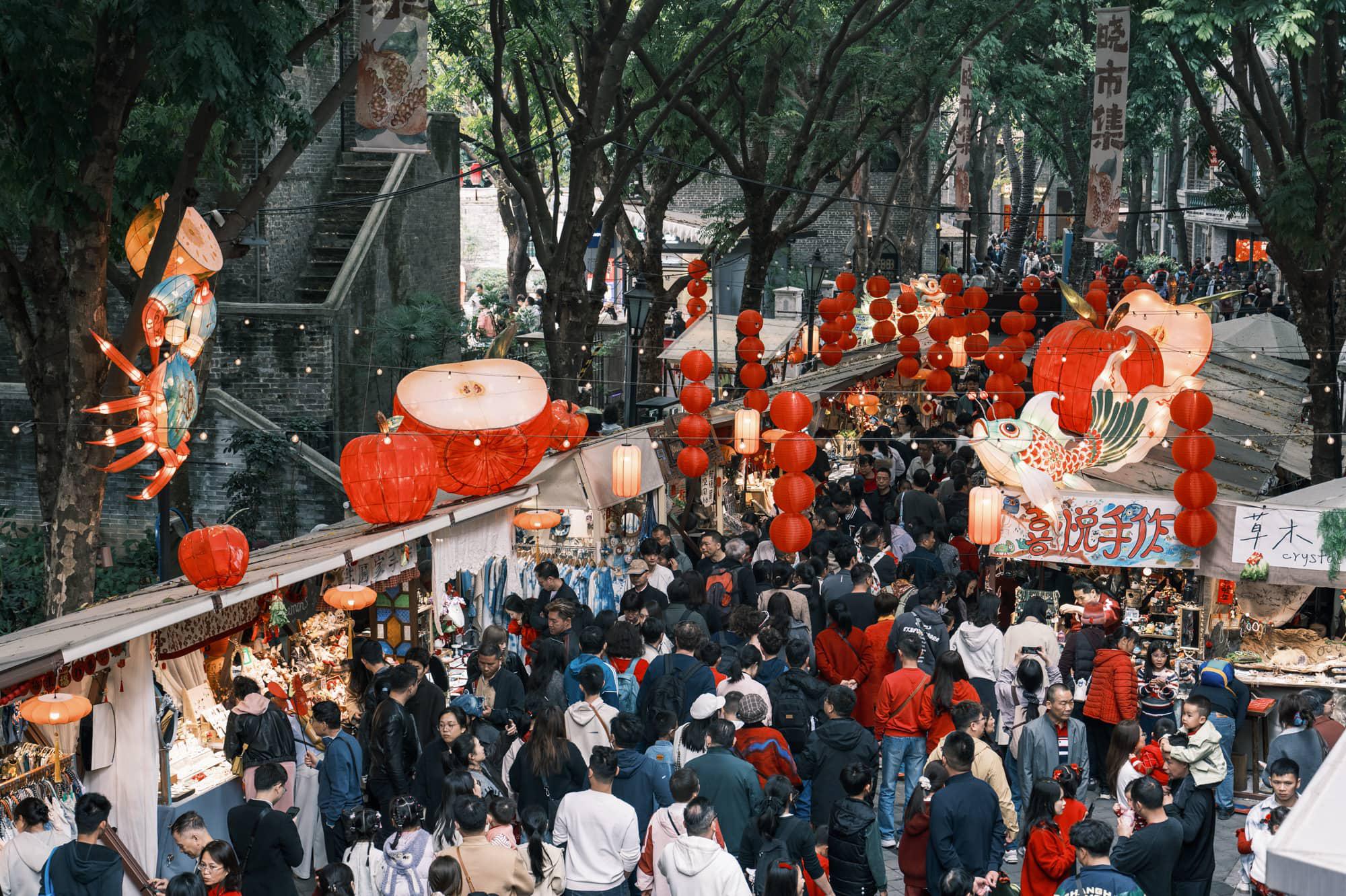 只可惜春节期间人流量太大,没逛多久就骑车冲出人群,逃到了黄沙地铁站。